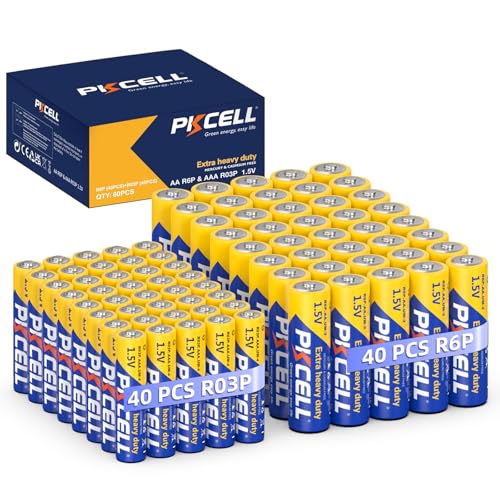PKCELL AA Batteries & AAA Batteries, 40 Double A Batteries and 40 Triple A Batteries Combo Pack (80 Count), 1.5V High-Performance Carbon Battery