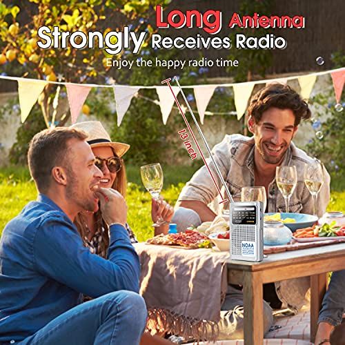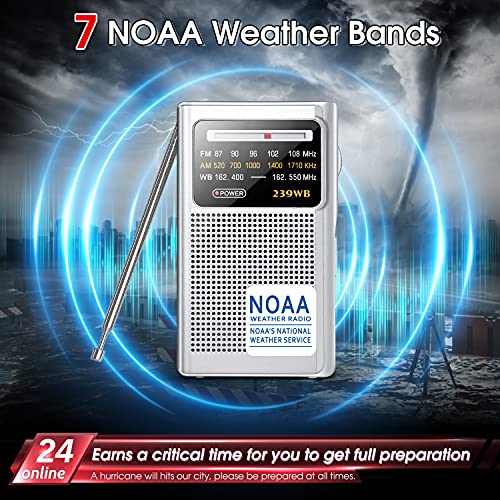 Greadio NOAA Weather Radio, AM/FM Battery Operated Transistor Portable Radio with Best Reception,Stereo Earphone Jack,Powered by 2 AA Battery for Emergency,Hurricane,Running, Walking,Home (Silver)