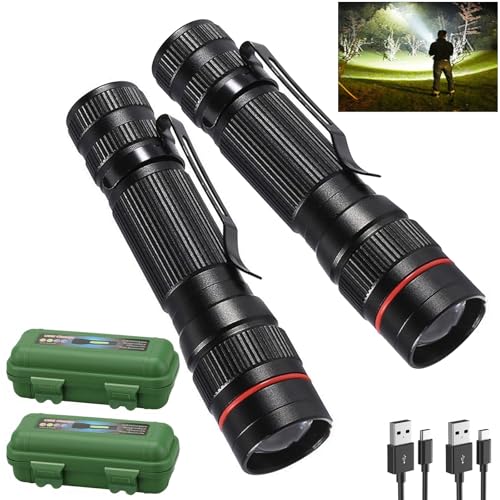 LED Flashlight Rechargeable 2 Pack, High Lumens Tactical Flashlights, Super Bright Small Flash Light, Mini Pocket Torch, 3 Modes Zoomable Flashlight for Outdoor, Camping, Birthday for Men Women