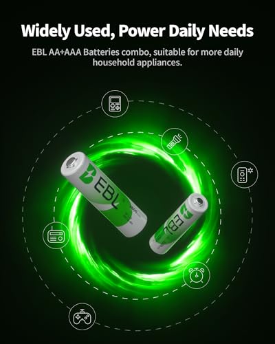 EBL 24 Sets AA AAA Batteries Combo with 12-Pack AA 2800mAh & 12-Pack AAA 1100mAh 1.2V Rechargeable Batteries