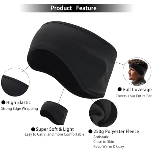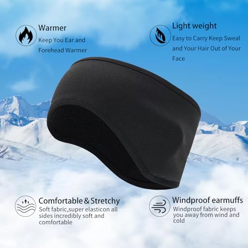 Ear Warmers for Men and Women & Ear Warmers for Cold Weather Headband (Black, One Size)