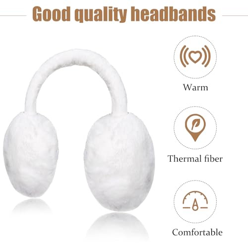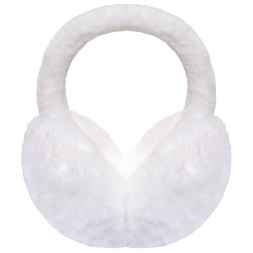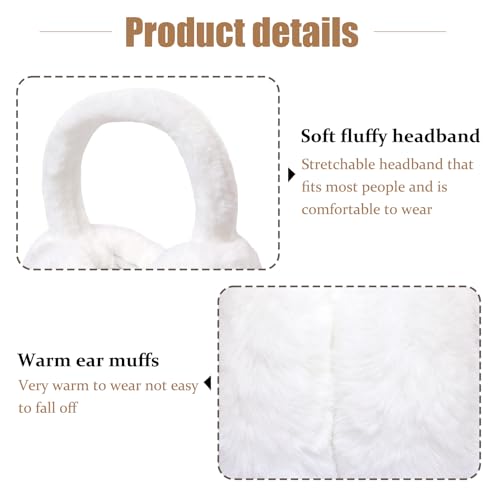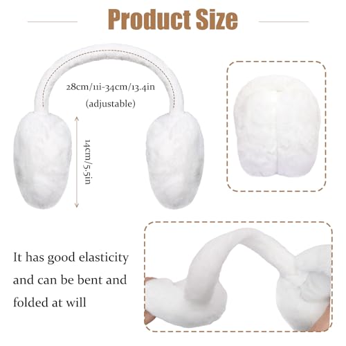 Womens Warm Ear Muffs Winter Faux Fur Earmuffs Fluffy Ear Warmer Fuzzy Adjustable Foldable Ear Covers Cold Weather