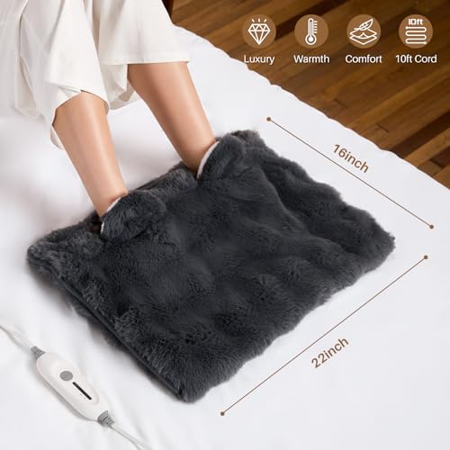 Electric Foot Warmer, Luxury Faux Fur Heating Pad for Feet Pain Relief Cramp, Heated Foot Warmer for Under Desk & Bed with 3 Heat Settings & 2H Auto-Off, ETL Certified, 16×22 Inch, Dark Grey