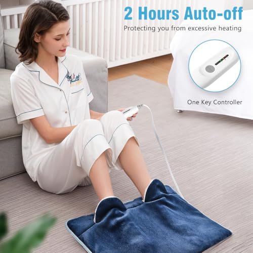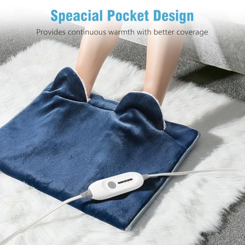 Electric Heated Foot Warmer Soft Flannel Foot Heater with 2h Auto Off & 3 Heat Levels Full Body Use Heating Pad for Feet, Abdomen, Cramps, Pain Relief Pocket Design 16″ x 22″