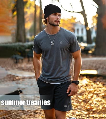 Lightweight Cotton Beanie, Summer Skull Caps, Breathable Thin Sleep Hats for Running Cycling Hiking Fishing