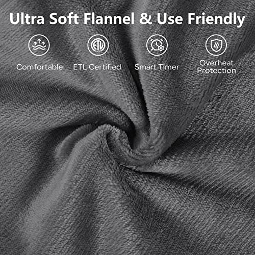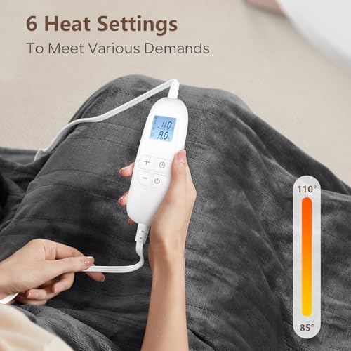 Electric Heated Blanket 84″ x 90″ Queen Size with 6 Levels & 8h Auto Off, Ultra Soft Flannel Full Body Heating Blanket, Machine Washable, Grey