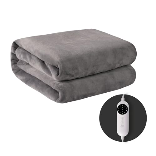 Heated Throw 50″x60″ Throw Size with 10 Heating Levels & 8 Hours Auto-Off, Machine Washable Extremely Soft & Comfortable Fast Heating Electric Throw Reversible Coral Fleece-Gray