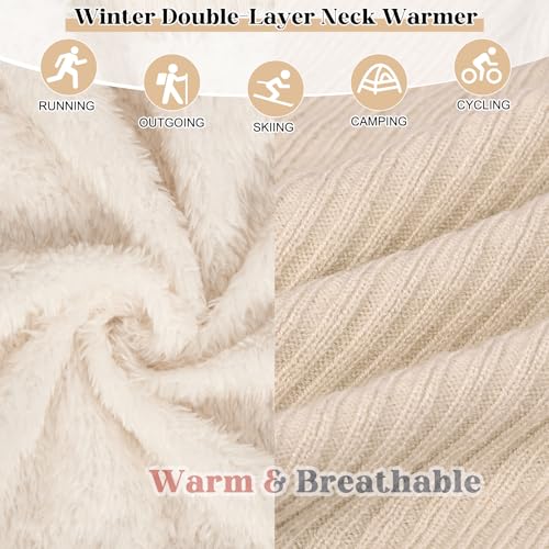 Chalier Infinity Scarf Winter Double-Layer Neck Warmer Knit Fleece Lined Circle Loop Scarves