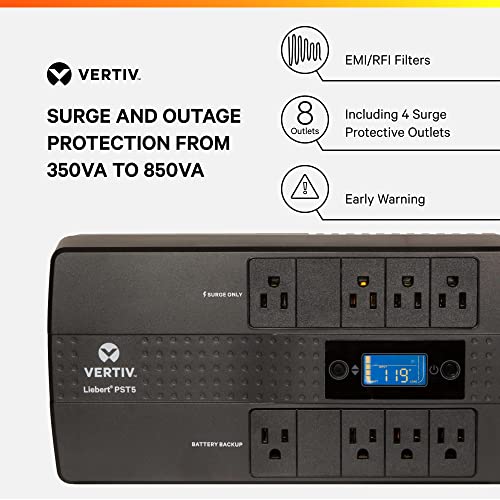 Vertiv Liebert PST5 UPS – 850VA/500W 120V Standby Power, 8 Outlets, Battery Backup with Surge Protection, LCD Screen, Energy Star Certified, 3 Year Warranty, Free Shutdown Software (PST5-850MT120)