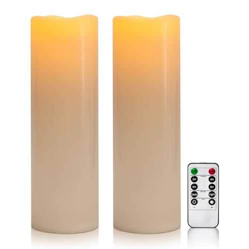 Battery Operated: Each flickering large flameless candle requires 3 AA batteries (Not included). Flameless pillar candles have no real fire, no smoke, no messy dripping wax. Safe for families with pets or little children. Great to set the mood of your room, porch and patio.