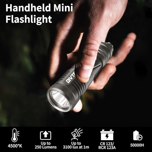 CR123 Waterproof Flashlight, Equip yourself with a compact tactical flashlight that offers up to 250 lumens of brightness. Ideal for diving enthusiasts, hikers, campers, home essentials, this handheld light is powered by a CR123 or RCR123A battery for 1 hour lasting illumination on your outdoor expeditions at 100% brightness. (include a CR123 battery NOT Rechargeble), For more energy recommendations, please search: B00MH4QI26.