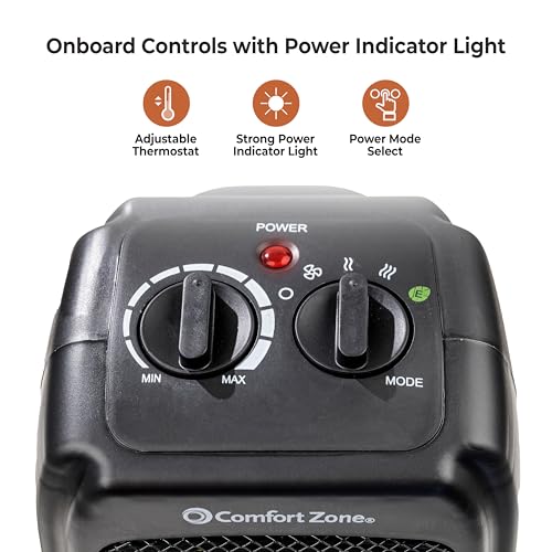 Be the first to review “Comfort Zone CZ442E Personal Energy Save Ceramic Heater – 1500W Portable with Adjustable Thermostat, Tip-Over Switch & Overheat Protection, Black”