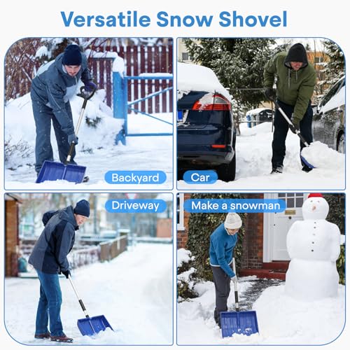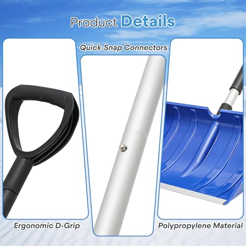 Ergonomic D-Grip Handle: The sturdy snow shovel includes a high-performance aluminum handle that is both sturdy and lightweight. The ergonomic D-grip design provides optimal comfort and ease of use.