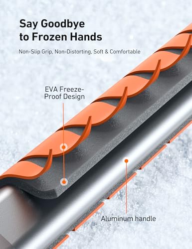 Ergonomic Freeze-Proof EVA Grip: The EVA handle ensures an effortless snow-shoveling experience. Its ergonomic design provides an anti-slip grip, making it comfortable to hold while preventing your hands from getting cold