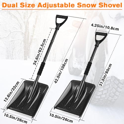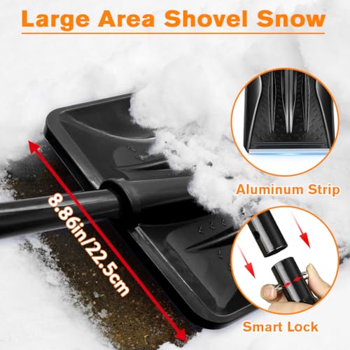 【UPGRADED & EXTENDED】The snow shovel is composed of a shovel head and three handles, which can be assembled in two different lengths to meet your different needs. The assembled short length is 33 inches, and the assembled length is 45 inches.Easy to assemble and disassemble, it won’t take up too much space when disassembled and placed in the car. It weighs only 1.45 pounds and is very lightweight to use.