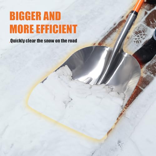 Snow Shovel,Metal Snow Shovel for Driveway,Scoop Shovel Heavy Duty with D Handel,Transfer Shovel for Gardening,Farms,and Barns,45 inches,Orange