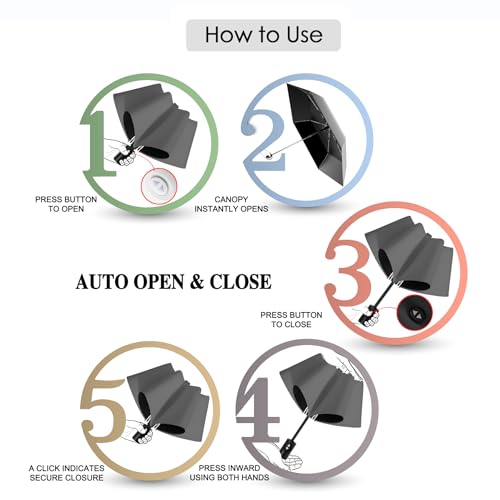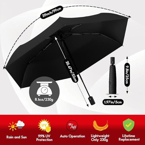 Auto Open Close Umbrella – Ultra Light Compact Travel & Backpack Size for Women and Men, UPF 50+ Eco-Friendly Sun Protection & Windproof Rain Umbrella with UV Defense