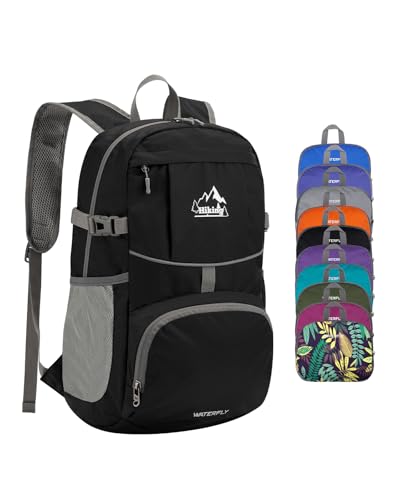 WATERFLY Hiking Foldable Daypack Backpack: 25L Ultra Lightweight Packable Waterproof Outdoor Travel Day Pack for Woman Man