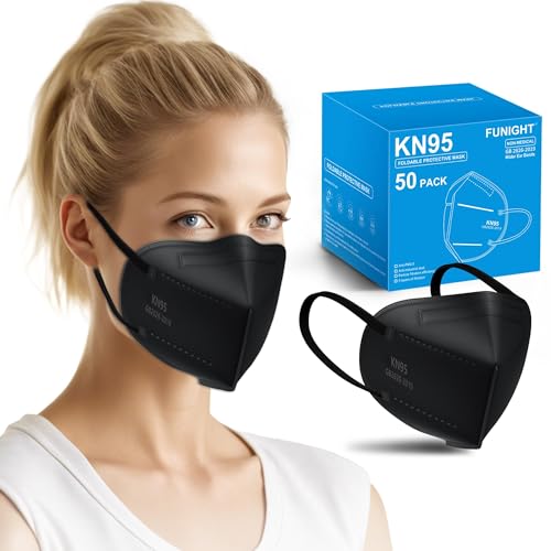 Funight KN95 Adult Masks 50 Pack 5 Layers Black Disposable Dust Masks with Filtering Efficiency≥95% Safety Breathable Mask