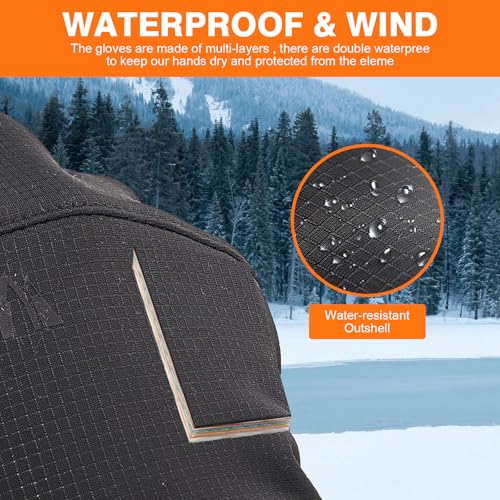 【Advanced Water-Repellent & Breathable Fabric】 Made with high-tech performance fabric, Keep Warm, Windproof and Waterproof while maintaining superior breathability— soft and dense fleece lining keeping hands dry and comfortable even during intense winter activities.