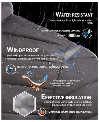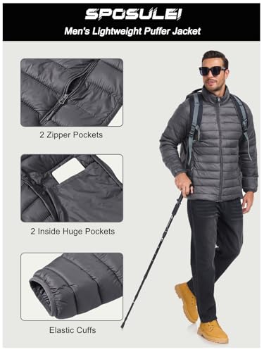 SPOSULEI Men Puffer Down Jacket Packable Lightweight Winter Jackets Coats Outdoor Waterproof Insulated Jackets