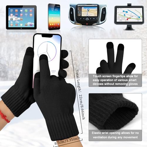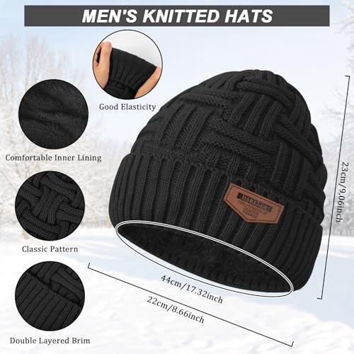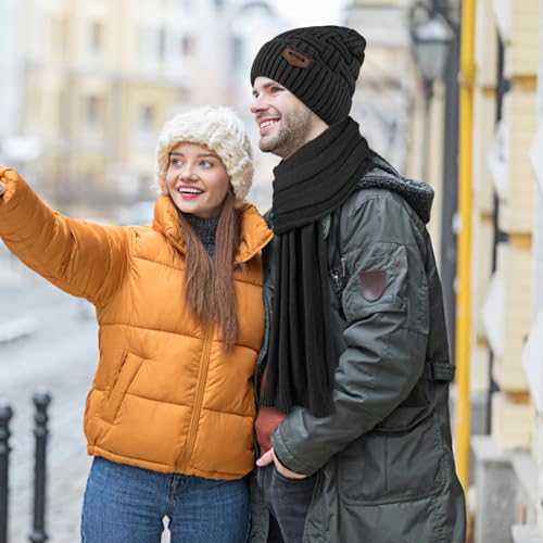 Mens Winter Hats Scarf for Men with Touchscreen Gloves Warm Long Scaves and Skull Caps Beanie Hat Gloves Set