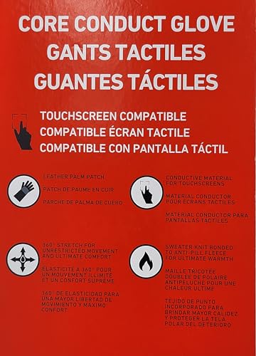 Spyder Core Conduct Gloves Touchscreen Compatible, Leather Palm Patch, 360 Degree Stretch, Sweater Knit Bonded