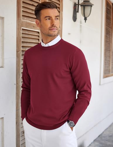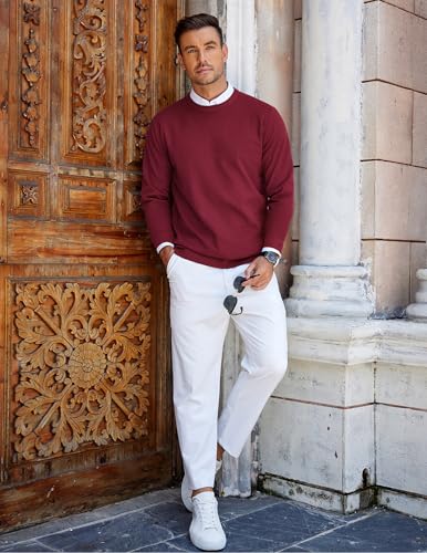 COOFANDY Mens Crew Neck Sweaters Long Sleeve Lightweight Knit Dress Pullover Sweaters