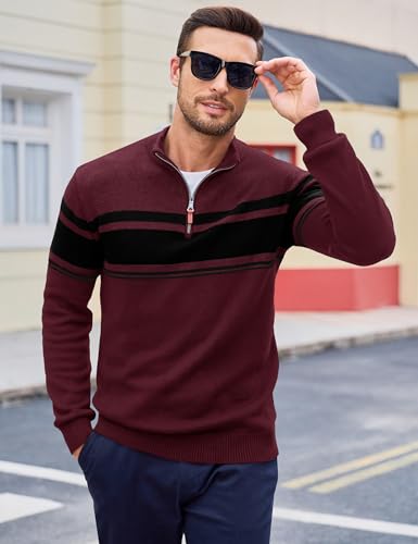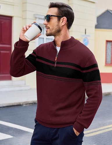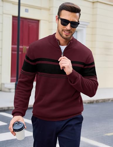 MAGCOMSEN Men’s Sweaters 1/4 Zip Cotton Sweater Pullover Polo Sweaters Striped Fall Winter Warm Sweatshirts