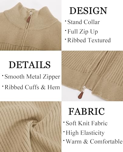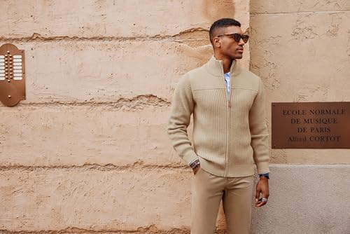 PJ PAUL JONES Men’s Full Zipper Cardigan Casual Stand Collar Cardigan Sweater Ribbed Knit Long Sleeve Sweater