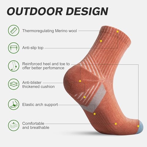 innotree Merino Wool Hiking Socks for Women Quarter Ankle Thermal Cushion Moisture Wicking Socks,5 Pairs