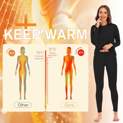 American Trends Womens Thermal Underwear Set Long Johns Base Layer Fleece Lined Top and Bottom Thermals Sets Loungewear