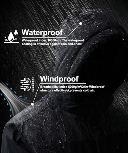 Men’s Mountain Ski Jacket Waterproof Fleece Liner Snow Coat Warm Winter Windproof Hooded Raincoat